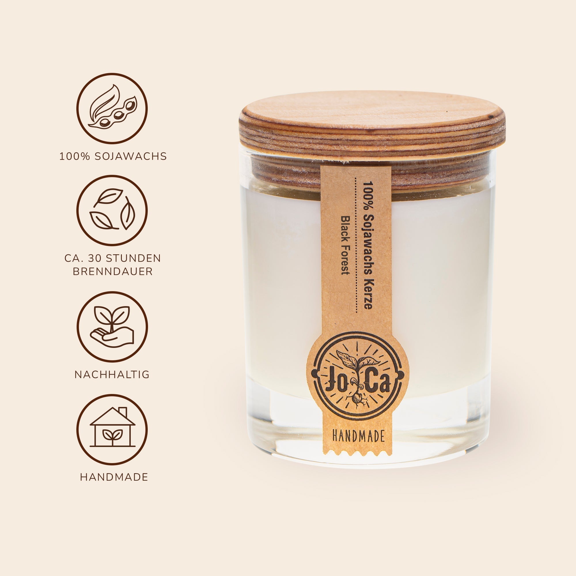 Unsere neueste, unverwechselbare Black Forest Duftkerze nimmt dich mit auf einen Waldspaziergang durch den Schwarzwald. Die Gerüche von Bergamotte, Wildblume und schwarze Johannisbeere erwecken ein mystisches, natürliches Sinneserlebnis, das durch leichte Untertöne von Kaschmirholz und Eichenmoos verstärkt wird. Hol dir mit der Black Forest Duftkerze den Tannen-Waldgeruch des Schwarzwaldes nach Hause.